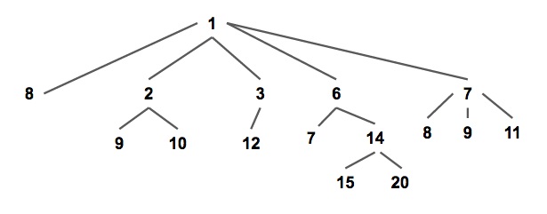 需要注意的是,一个节点的儿子链表是按插入时间排序的,即最右边的节点最早成为父节点的儿子,最左边的节点最近成为父节点的儿子.