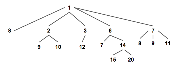 需要注意的是,一个节点的儿子链表是按插入时间排序的,即最右边的节点最早成为父节点的儿子,最左边的节点最近成为父节点的儿子。