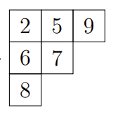 杨表(Young tableau)是通过用取自某个字母表的符号填充杨氏图的框来获得的,这通常需要是一个全序集和。填入的元素写作