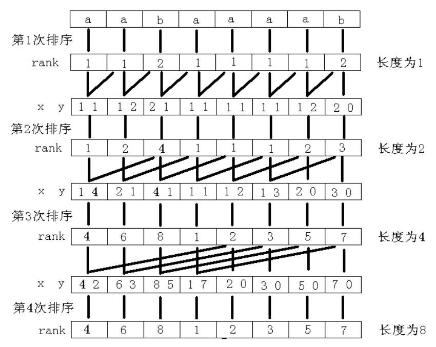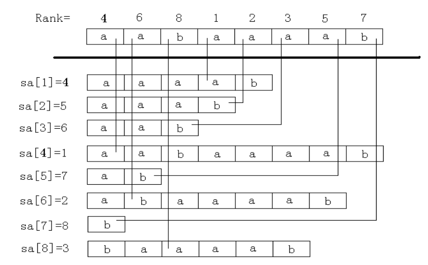 的子串,即每个字符进行排序,得到排序后的编号数组